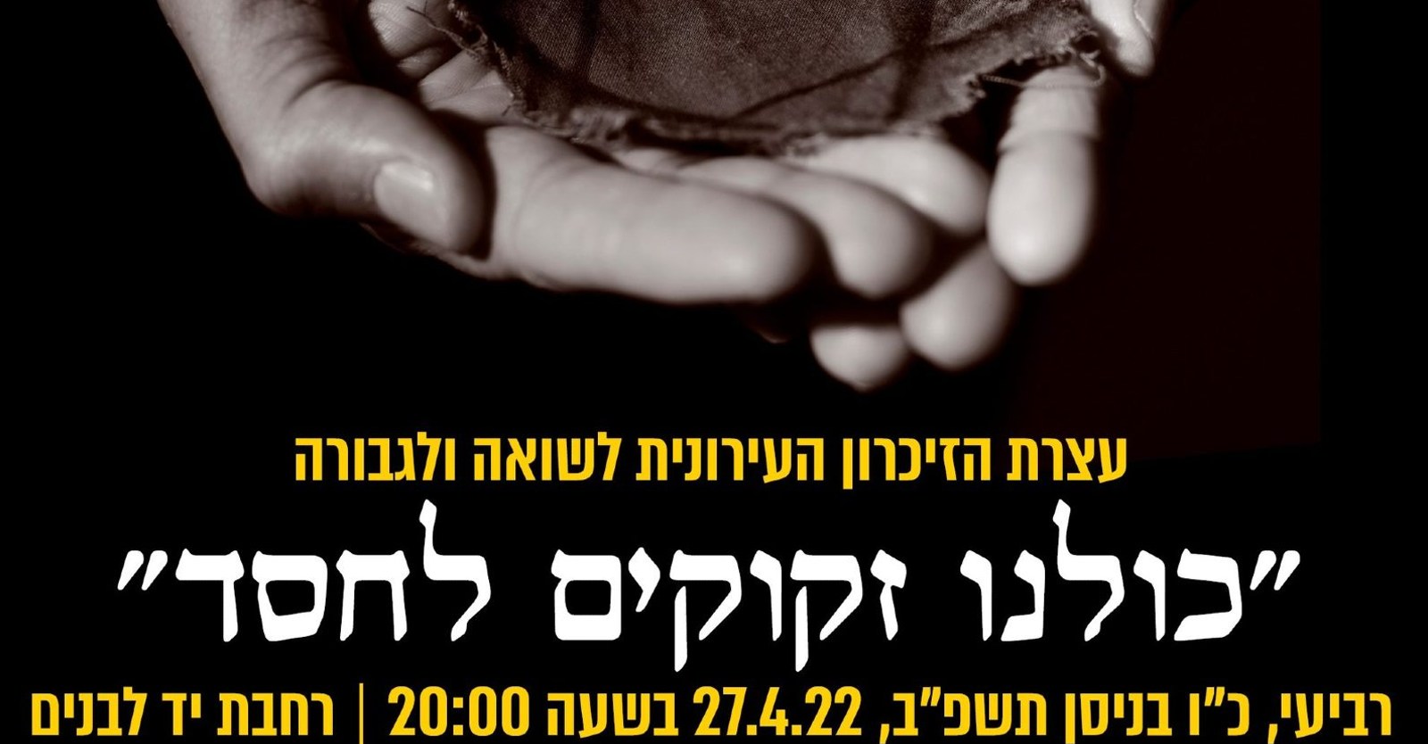 כמידי שנה תתייחד קהילת הוד השרון עם זכרם של הנספים בטקס יום הזיכרון לשואה ולגבורה, שיתקיים השנה בסימן “מצל אל צלם”. בטקס יישא דברים ראש עיריית הוד השרון, אמיר כוכבי. בהשתתפות שורדות/י השואה: חיים ארביב, ד”ר גרו יוליאנה, יהודית לוי, חנה פישלוביץ’, לילי פרויד, שמואל פרויד ומיקי רינת. כתיבה ובימוי: שירה קדם קצנלנבוגן , הנחייה: […]